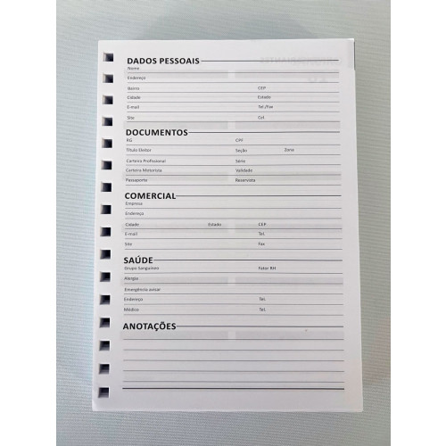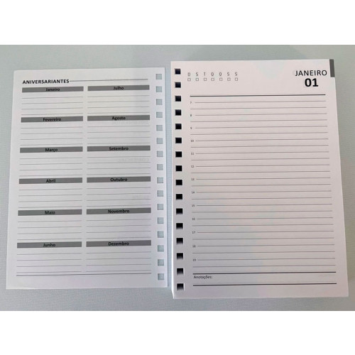A agenda permanente personalizada possui um dia por página.