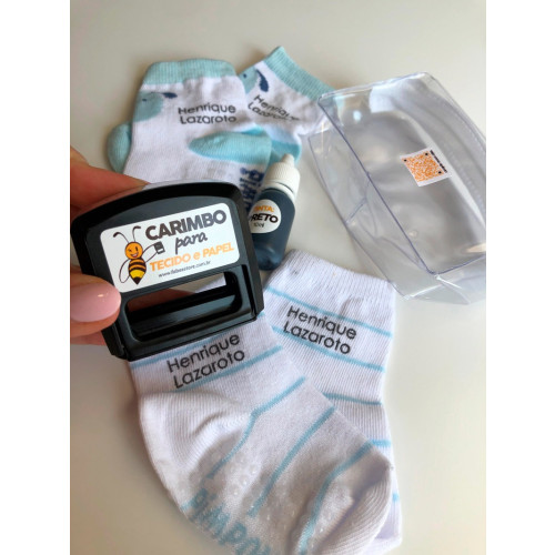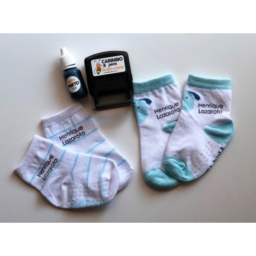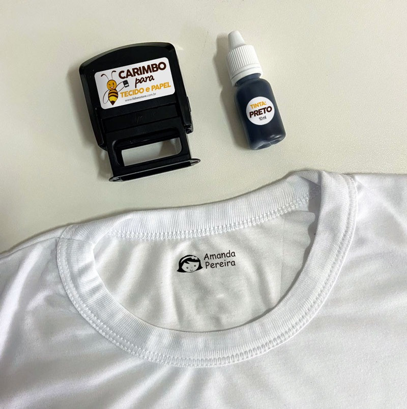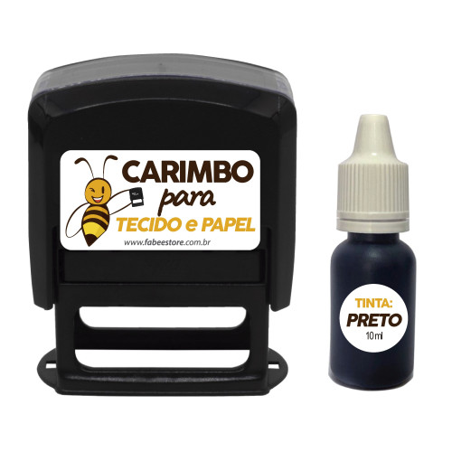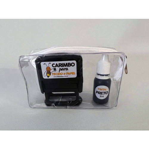 - kit contendo: 1 carimbo + 1 tubo de tinta preta não tóxica + 1 mini-estojo plástico transparente com zíper
