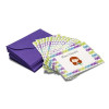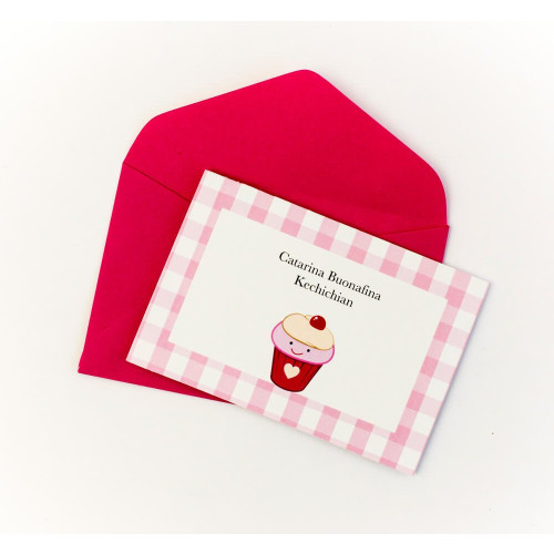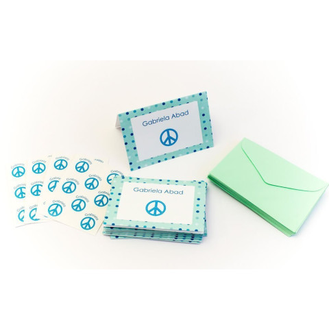 Kit com 30 cartões duplos personalizados mais 30 envelopes (a cor do envelope você escolhe logo abaixo). Opcional: 30 mini etiquetas redondinhas, também personalizadas, para fechar os envelopes. Embalado em caixa de acetato.