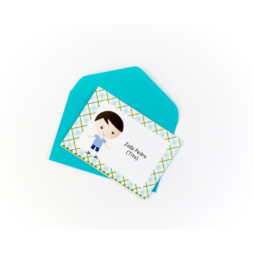 • Kit com 30 cartões duplos personalizados (tamanho 10 cm x 7 cm impresso em papel alto alvura 180gr);