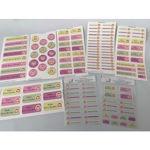 - 6 cartelas de etiquetas vinil para objetos (total com 100 etiquetas):
