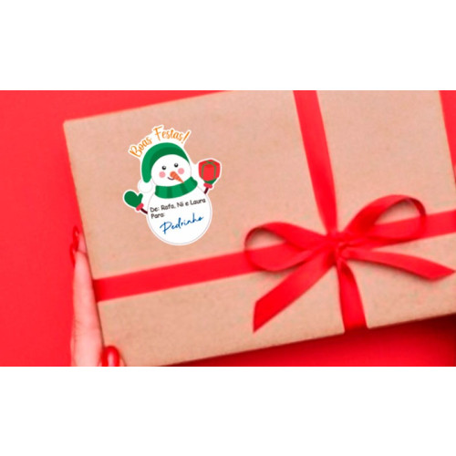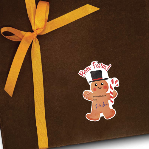 Escreva o nome desejado e escolha a sua fonte para criar a sua etiqueta personalizada De-Para com formato diferenciado de Natal para identificar com muito charme as caixas de presentes. (Indicamos escrever com uma caneta permanente para melhor  absorção e fixação na etiqueta)