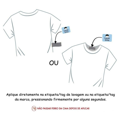 • NÃO passe o ferro em cima da etiqueta depois de aplicada na tag da roupa;