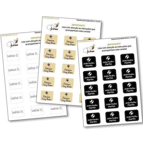• Cada cartela contém 15 etiquetas no tamanho aproximado 1,8 cm X 2,2 cm cada