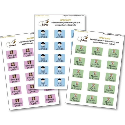 • Para as etiquetas tags de roupas, são utilizados apenas o rostinho dos personagens da Turma da Fabee,. Devido ao tamanho das etiquetas não colocamos o corpo inteiro.