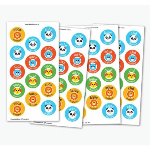 • Cartela com 14 etiquetas; sendo: 4 etiquetas de suco; 4 etiquetas de leite; 3 etiquetas de água e 3 etiquetas de chá (você pode alterar os nomes dos líquidos anotando no campo observação como deseja)