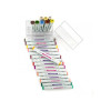 • Cole toda a extensão da etiqueta de vinil em uma superfície seca, lisa (não rugosa) e limpa; (em lápis sextavados, indicamos a colagem da etiqueta vinil no sentido contrário ao comprimento do lápis, para melhor aderência e durabilidade)