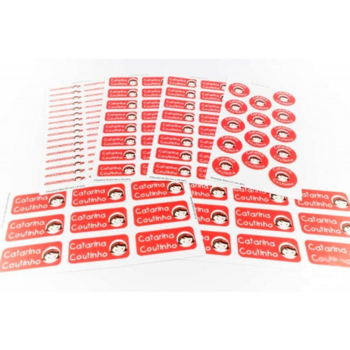 Encomende seu kit coordenado de etiquetas personalizadas de vinil + etiquetas personalizadas para roupas e uniformes com o mesmo design. :)