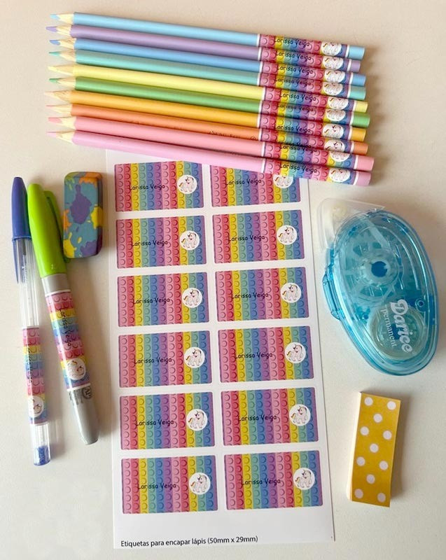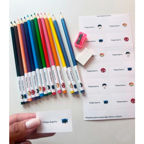 Com a coleção variada de cores e temas das etiquetas da Fabee Store, você consegue identificar todos os lápis, canetinhas e marcadores mantendo aquela organização que faz toda diferença no material escolar!