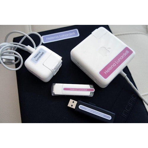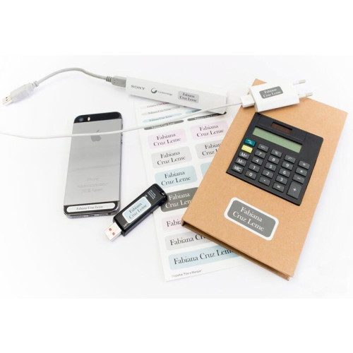 Etiquetas de vinil Fixe & Marque não têm desenho e foram criadas especialmente para os "grandes" (mamães, papais, avós, tios,...) nunca mais perderem seus acessórios!! Elas são resistentes à água e podem Ir ao microondas e lavadora de louças!