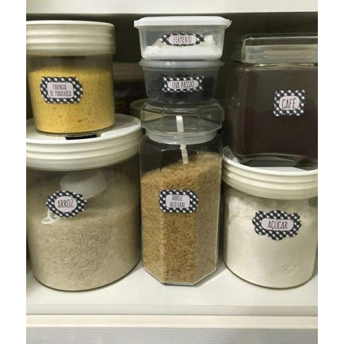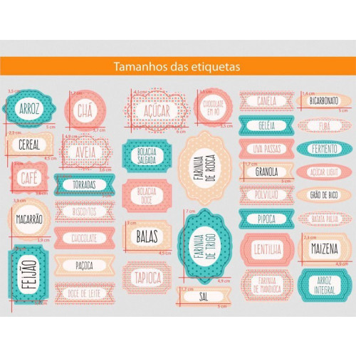 • Cada kit de etiquetas para mantimentos contém 3 cartelas, totalizando de 37 etiquetas em diferentes tamanhos;