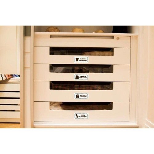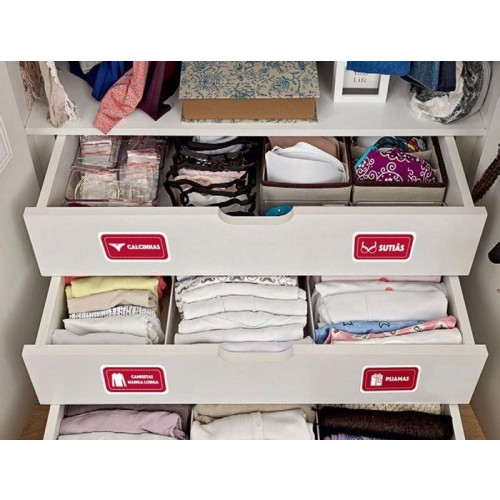 • O kit de etiquetas organizadoras para closet contém 3 cartelas, com um total de 27 etiquetas;