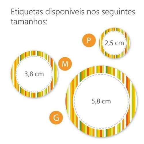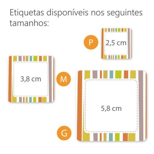 • São 3 tamanhos de etiquetas para escolher: