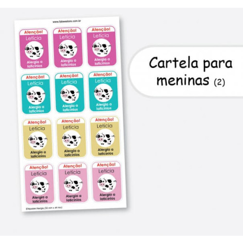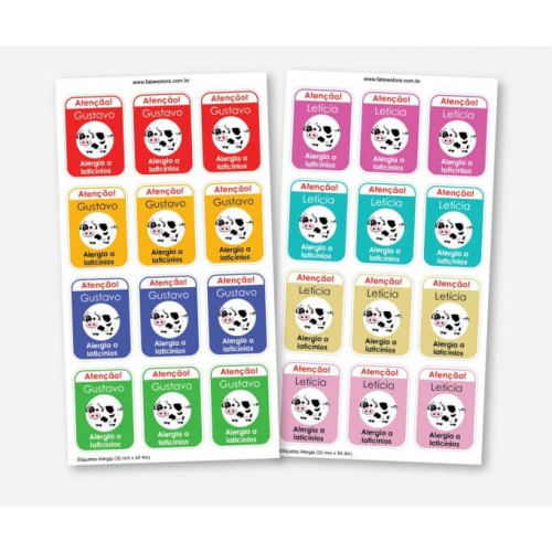 • A cartela contém 12 etiquetas iguais (alternando apenas as cores);