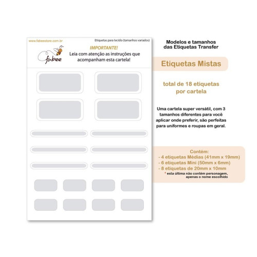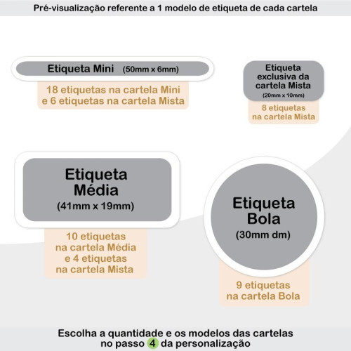 - Etiquetas Mistas (6 etiq. Mini / 4 etiq. Médias / 8 etiq. 20mm x 10mm) - 18 etiquetas ao total