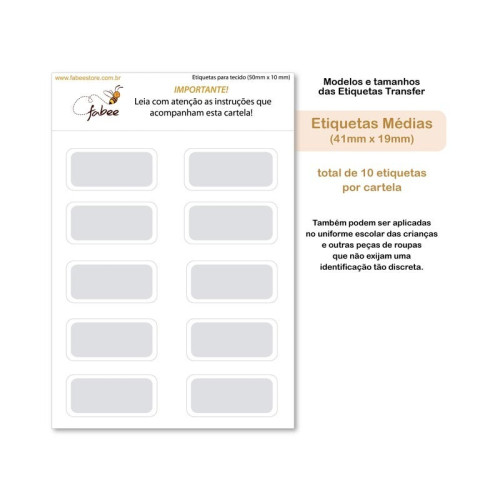 - Etiquetas Médias (41mm x 19mm) - 10 etiquetas por cartela
