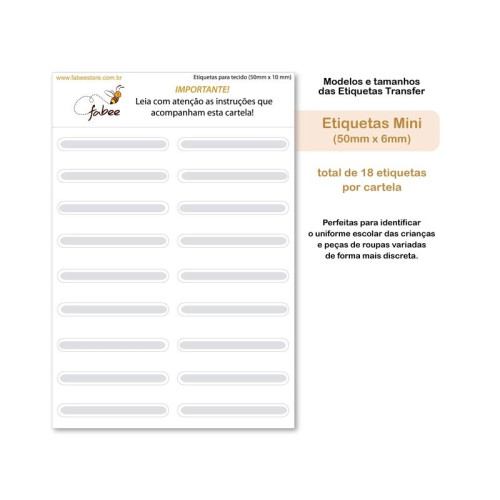 - Etiquetas Mini (50mm x 6mm) - 18 etiquetas por cartela