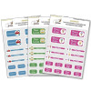 • Em cada kit de etiquetas, os personagens, kit moldura e nome se repetirão em todas as cartelas escolhidas