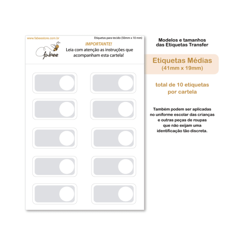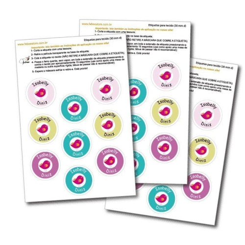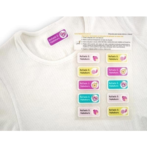 • NÃO passe o ferro em cima da etiqueta depois de aplicada no tecido;