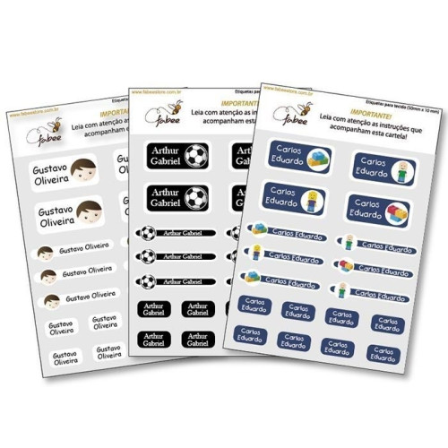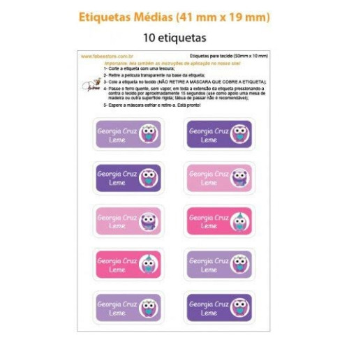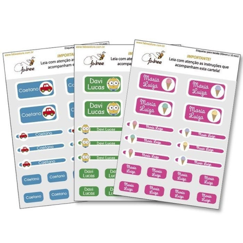 *As etiquetas 20mm x 10mm não contém personagens, sendo impressas apenas com o nome escolhido.