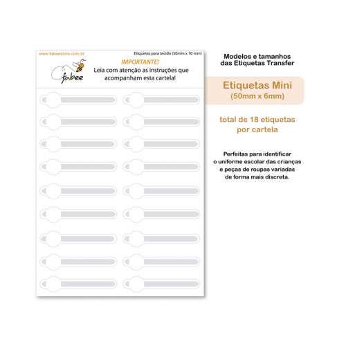 - Etiquetas Mini (50mm x 6mm) - 18 etiquetas por cartela