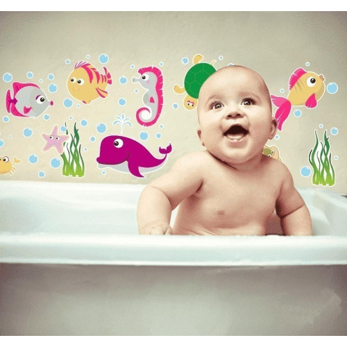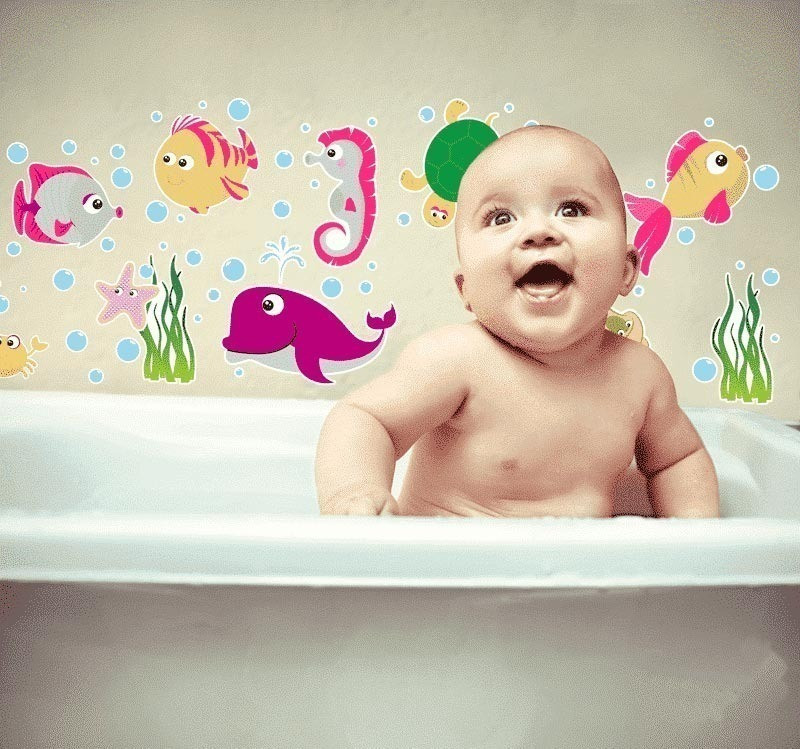 Decore o banheiro do seu filho deixando esse ambiente mais bonito, lúdico e divertido! Os Adesivos para banho são impressos em vinil impermeável e é muito fácil de limpar!