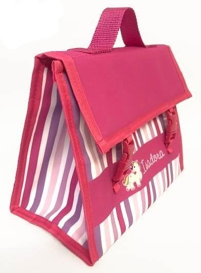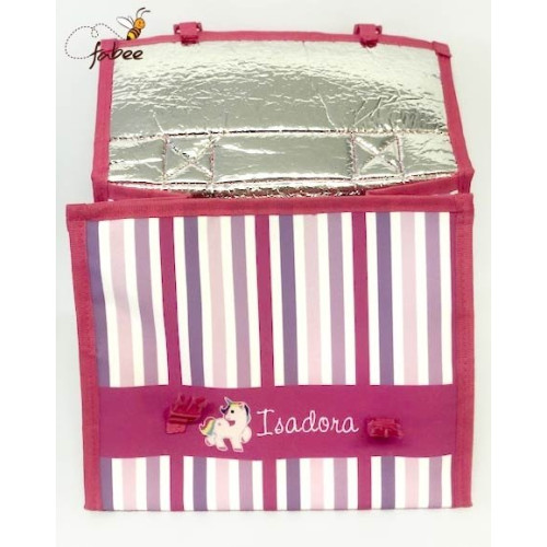 A lancheira térmica personalizada da Fabee possui uma manta térmica interna para conservar por mais tempo o lanche do seu filho!