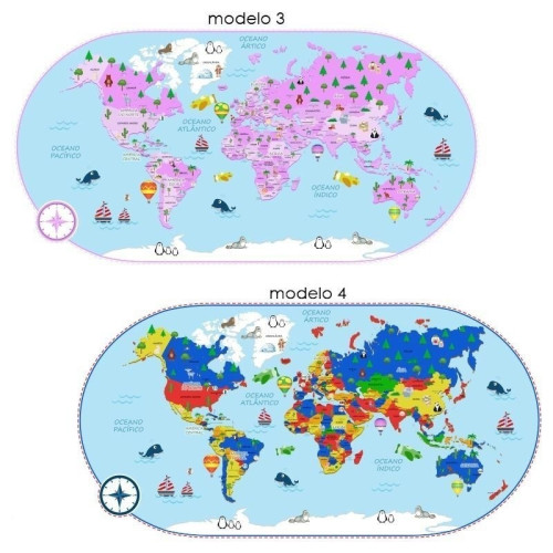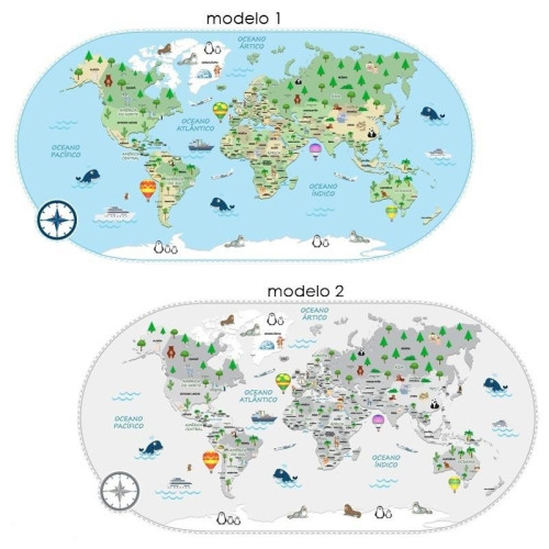 • Mapa Mundi impresso em vinil adesivo próprio para aplicação em paredes.