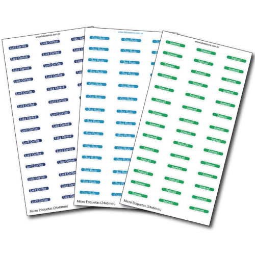 • Cada cartela contém 42 micro etiquetas, no tamanho aproximado 25 mm x 6 mm;