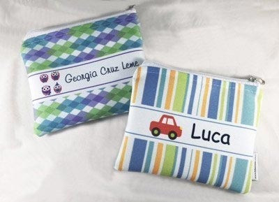 Impressas em tecido encorpado, o mini nécessaire da Fabee Store é lindo e versátil, possui personalização nos dois lados e fechamento com zíper.