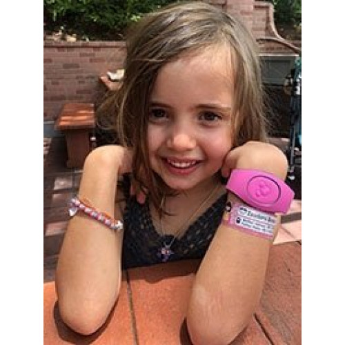 Na Fabee Store a pulseira de identificação para crianças é resistente à água e disponível em duas opções.