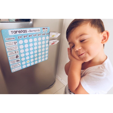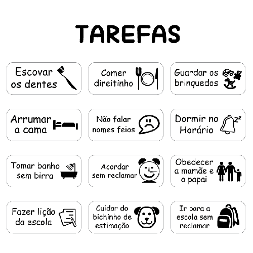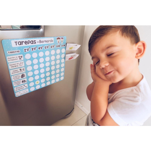 OBS: As tarefas extras que desejar deverão ser escritas com a canetinha que acompanha o produto diretamente no quadro, não é possível fazer imãs com outras tarefas além das descritas acima.