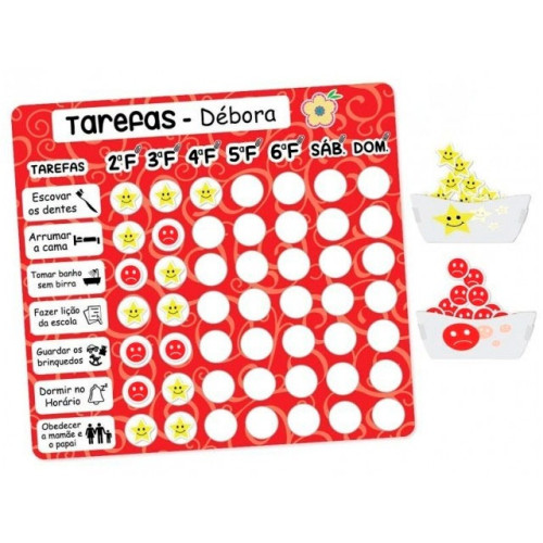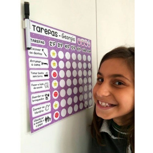 (*) as 12 tarefas imantadas não são personalizáveis; caso deseje uma tarefa personalizada você deve usar a caneta-apagador que acompanha o quadro.