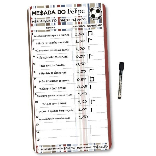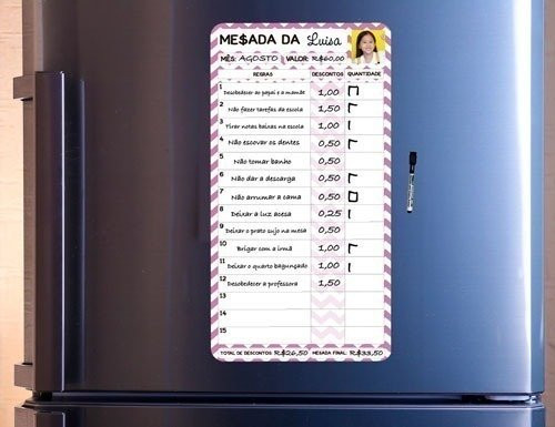 Quadro de Mesada pode ser personalizado com o nome do seu filho, com personagem ou ícone do site ou até com uma foto ou imagem da sua preferência!