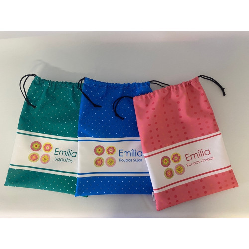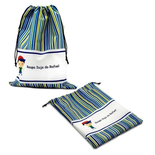 Produzidos em tecido com fechamento em cordão, o saco multiuso personalizado da Fabee Store é um produto lavável, lindo e versátil.